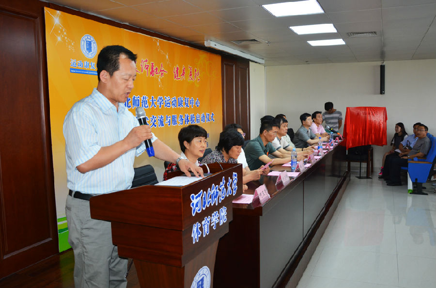 2015年7月8日下午,德赢ac米兰官方合作运动康复中心落成启用暨学术交流与服务体验启动仪式在德赢winac米兰举行。德赢ac米兰官方合作校长蒋春澜教授,河北省体育局副局长李东奇,德赢ac米兰官方合作党委常委、副校长邓明立教授,北京体育大学康复中心主任矫玮教授,清华大学体育与健康科研中心主任张冰教授,河北省教育厅思政体卫处正处级调研员刘若群,河北省人民医院康复医学科主任赵振彪主任医师等领导出席。