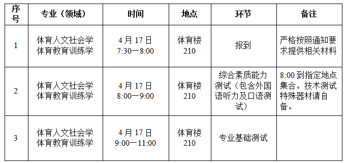 报考运动训练专业(领域)的考生须进行技术测试,技术测试重点了解考生体育技能掌握程度。